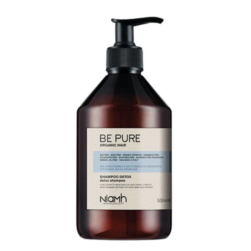 Be Pure Detox Shampoo for normal to oily hair enhances deep cleansing of the scalp, removing residue and excess sebum without drying it out, restoring a healthy balance and natural shine.