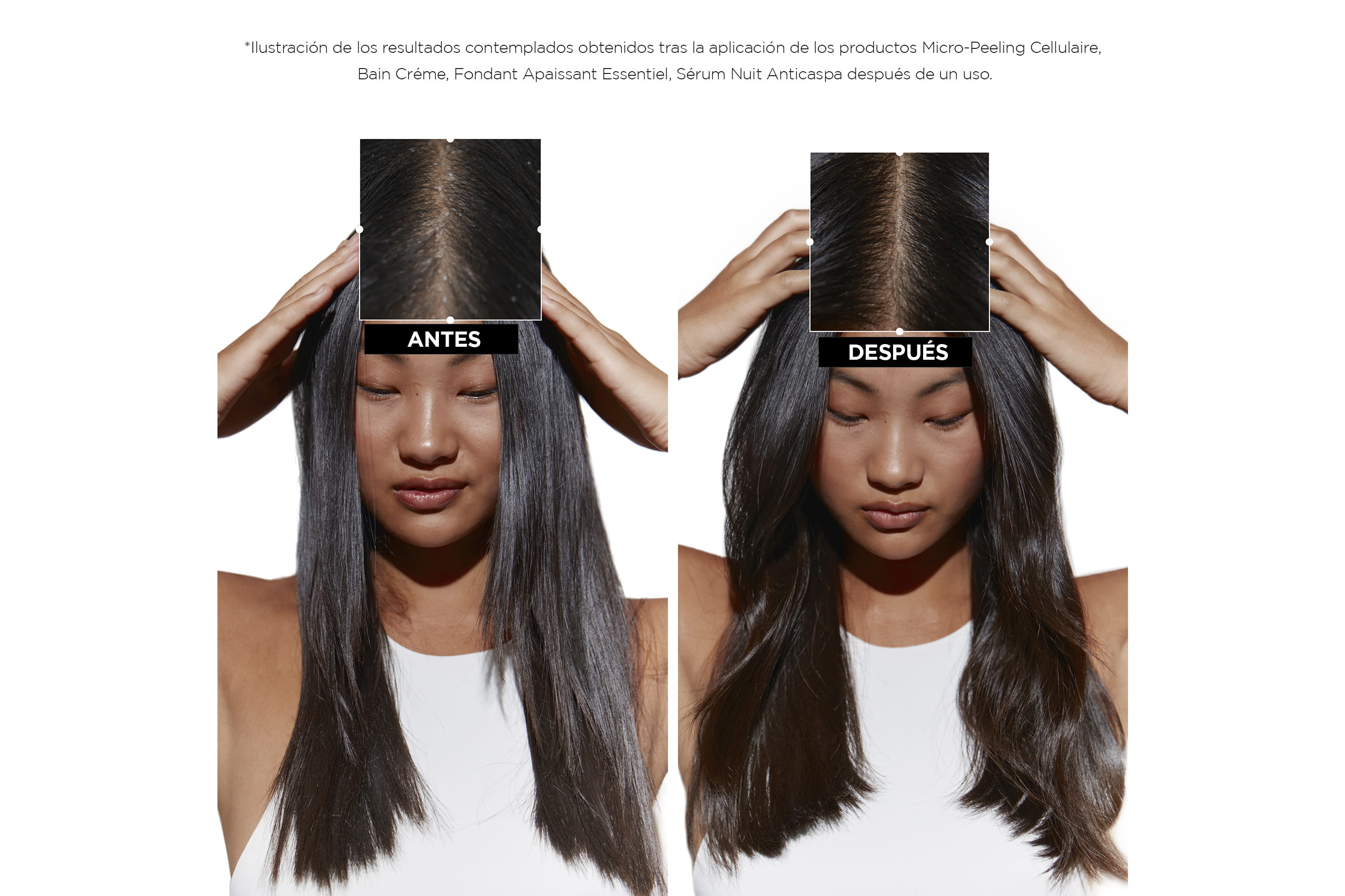 - It acts globally, on scalp and hair, without weighing it down.