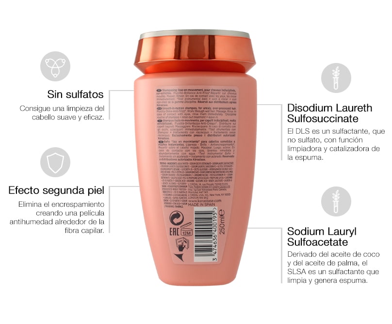 - Polímero reticular: forma una “segunda piel” alrededor de la fibra capilar para crear una superficie regular y un efecto anti-humedad.