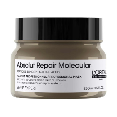 ¡Repara en profundidad tu cabello! La mascarilla Absolut Repair Molecular es una tratamiento con aclarado que repara y restaura de forma intensa e instantánea todo tipo de cabello dañado para que vuelva a presentarse suave, brillante y con movimiento natural. Su textura cremosa y rica penetra con facilidad la fibra capilar para aportarle fuerza y cuidado. A pesar de su acción profunda, no apelmaza el cabello, adaptándose a la perfección a todo tipo de cabello dañado, frágil, debilitado y/o sensibilizado. ¡Vuelve a lucir una melena nutrida, reparada y flexible! Con el uso de esta línea, es posible reparar dos años de daños, gracias a los resultados obtenidos de una invesigación avanzada que ha logrado descomponer los péptidos e inyectar sus componentes por separado en la fibra capilar para que, una vez dentro, reconstruyan la estructura macromolecular capilar. ¡Repara tu cabello desde el interior y hazlo brillar de nuevo!