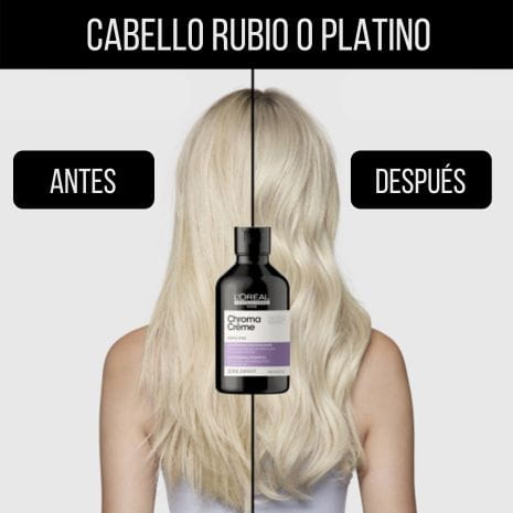 ¡Acaba con los tonos amarillentos! El champú Chroma Crème Purple Dyes de L'Oréal Professionnel lava, cuida y neutraliza de forma homogénea y efectiva las tonalidades no deseadas en cabello rubios. Gracias a su pigmentación, permite matizar de forma instantánea los reflejos y las tonalidades amarillentas o cálidas no deseadas incluso en los rubios más fríos. Además, proporciona un gran brillo y suavidad a tu cabello.