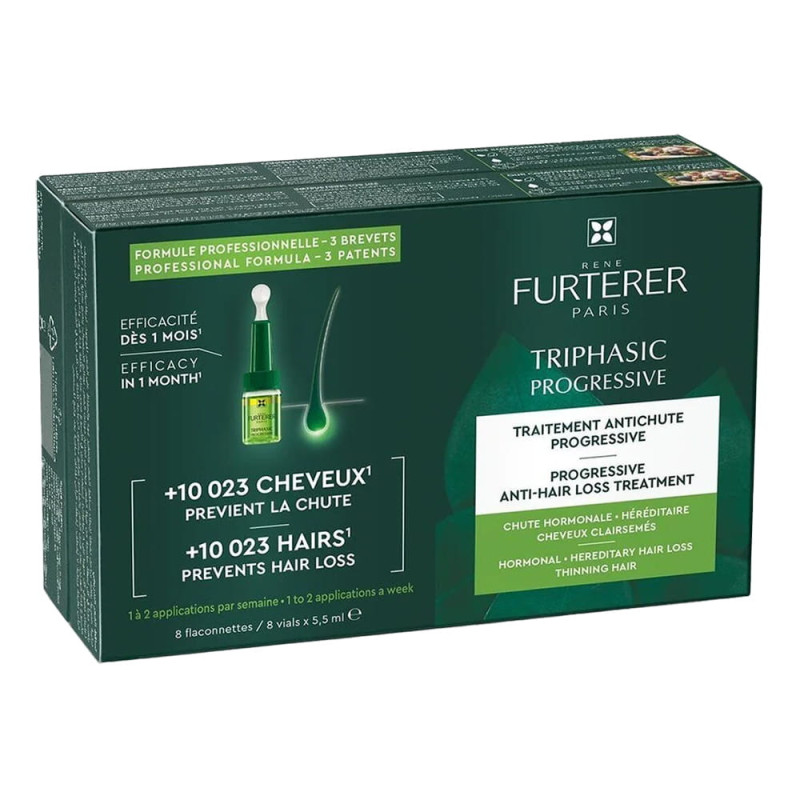 Trata la caída de forma global con este tratamiento. El Tratamiento Anticaída Progresiva actúa de forma efectiva sobre tres puntos: frena la caída capilar por causas hereditarias o hormonales, regulando de forma eficaz los desequilibrios en los ciclos de vida del cabello, estimula el crecimiento sano y fuerte del cabello y densifica y aumenta el grosor de la fibra capilar. Gracias a estos tres ejes de actuación, en tan solo un mes de aplicación, el cabello recupera un aspecto más fuerte y sano y luce más denso.