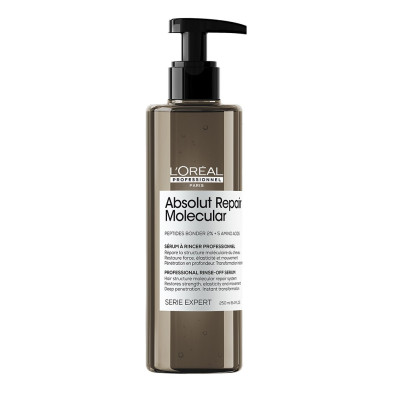 Trasformate i vostri capelli danneggiati! Il siero Absolut Repair Molecular tratta e rafforza la fibra capillare, riparandola, in modo che i capelli riacquistino un aspetto sano, lucido e morbido. Grazie alla sua consistenza, penetra facilmente all'interno della fibra capillare per garantire un'azione intensa e non appesantisce i capelli. Con il suo utilizzo, riparerete i danni a livello molecolare e trasformerete istantaneamente i vostri capelli.